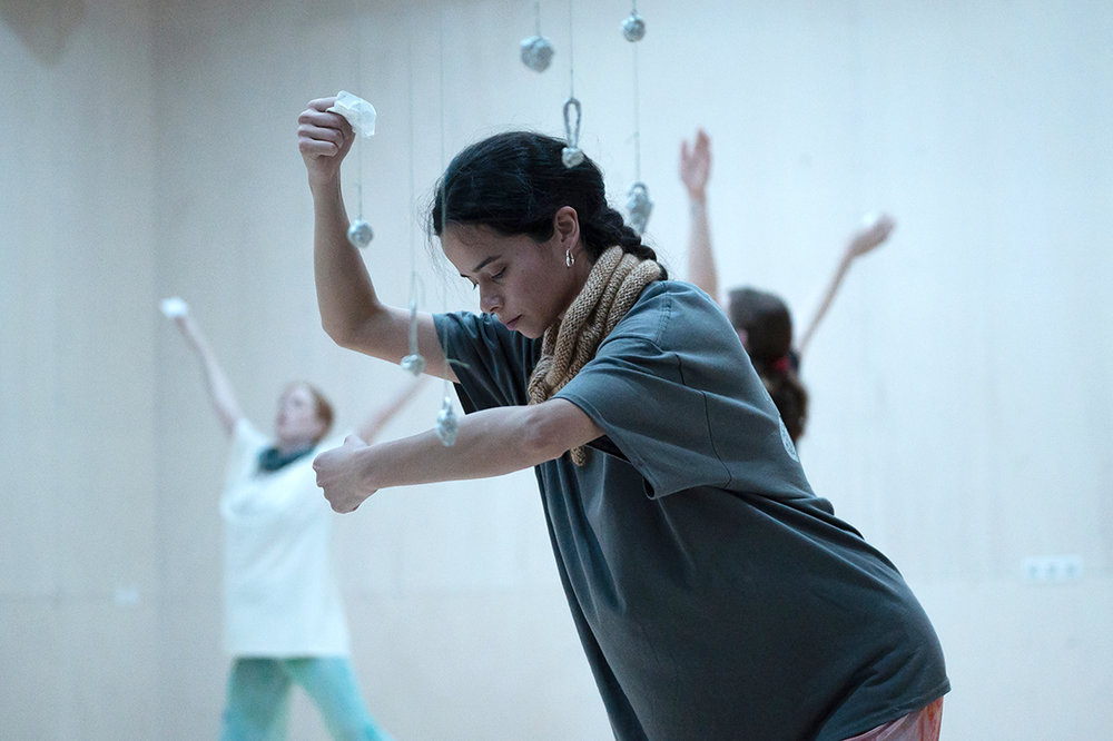 Choreography, Space: Emmilou Roessling | Technische Leitung: Maika Knoblich | Performance: Amanda Barrio Charmelo, Rachell Bo Clark, Hanako Hayakawa, Emmilou Roessling | Original-Musik: Mårten Spångberg | Mit Tänzen aus den Audio-Beiträgen von Vincent Riebeek, Isabel Lewis, Anna Nowicka, Fia Neises, Tarren Johnson, Alice Heyward.