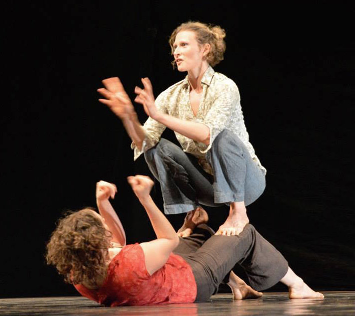 Teilnehmer*innen des Performance-Projekts "Between spaces, between bodies – Frontiers and Bridges" unter der Leitung von Marie Chabert zeigen Ergebnisse der gemeinsamen Arbeit.