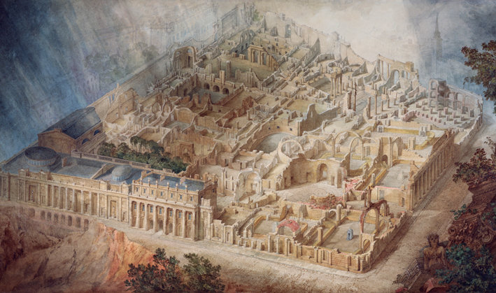 Die Zeichnung »The Bank of England in Ruins« (Joseph Gandy, 1830) wird zum Flucht- bzw. Aus- gangspunkt für die Wissenschaftlerin Andrea Binder (University of Cambridge) und die in Berlin lebende Künstlerin und Architektin Bettina Vismann, um die materielle und virtuelle Macht des Geldes bei der Politikgestaltung zu erkunden. Im Gespräch hinterfragen wir den Einfluss des Geldes auf unsere Körper und (Körper-) Bilder.
