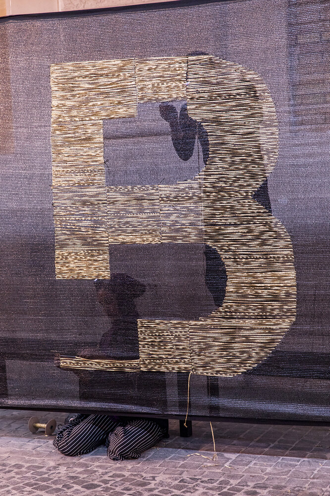 For the past three years, «Oblio» has been offering space in various locations to reflect on the concept of voids and omissions in historical and private memory. As a guest at Grüntaler 9, our new, temporary location in the Wedding neighborhood, Muna Mussie begins an individual stage of her embroidery project. The ritual performance installation meets the sound project “Curva Cieca Oblio ኩርቫ ዕውር ምርሳዕ”, which emerged from the collaboration with sound designer Massimo Carozzi for the Xong record series by Xing. Sound and action thus intertwine in a single act of weaving that seals the long process of Oblio.
